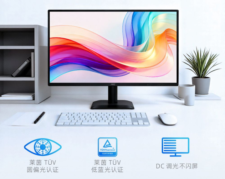 沿路走来,AOC长久专注于时期改进与用户需求的深度知悉,对商用显现时期界限进行一次次探索与冲破,勤苦于为不同业业的用户提供更高效、更称心、更可靠的视觉处治有策画。其商用显现器中,E1系列当作来源,精确对准了基础商用场景干系于健康与节能的核肉痛点,系列居品通过莱茵TÜV低蓝光认证,凭借低蓝光不闪屏时期缓解行业用户用眼压力,打造称心体验。
