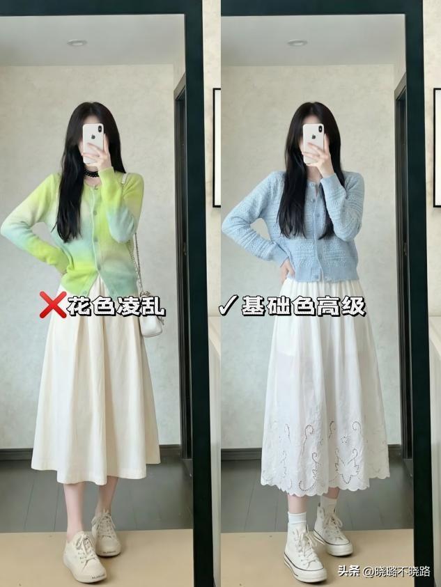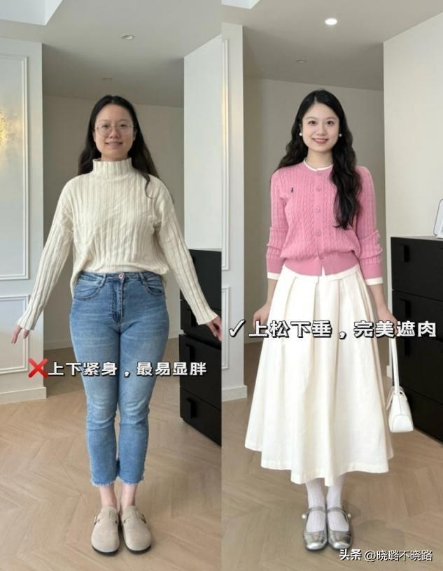这是“奶奶衫+裙子”组合最中枢的上风。奶奶衫宽松的版型能完满遮拦上半身的赘肉(如拜拜肉、小肚腩),而V领想象能拉长颈部线条,显脸小。下半身搭配高腰裙装,不仅能遮住大腿和臀部的肉肉,还能通过提高腰线来优化身段比例。关于微胖女生,它是藏肉神器;关于小个子女生,它是显高隐私。