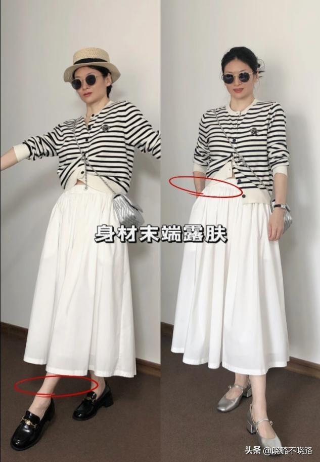 不管穿什么长度的裙子,一定要泄漏脚踝。如若穿长裙,聘任开叉想象,来往间朦胧泄漏腿部线条,既剖析又能减轻巩固感。协作V领泄漏的颈部肌肤,险阻呼应,通透感齐全,当然显高。