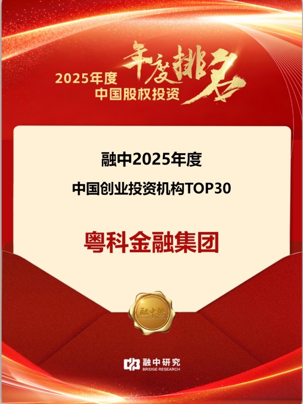 近日,融中探讨2025年度中国股权投资年度排行发布,粤科金融集团荣获“融中2025年度中国创业投资机构TOP30”。