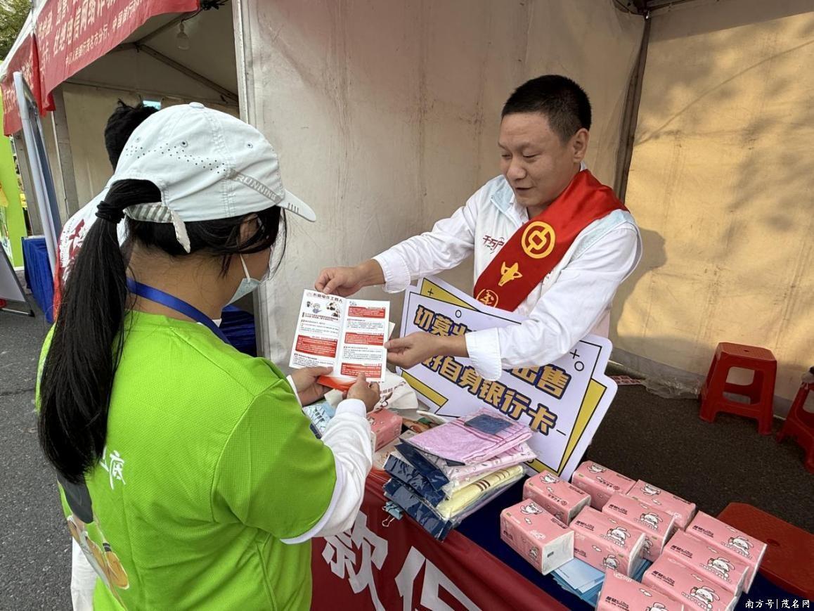 为更好的开展反诈学问宣传,深化反诈宣传收效,中国银行茂名分行经心搭建反诈宣传管事站,建筑专属磋商台,责任主说念主员化身“金融宣传员”,身着结伴服装,在东说念主流密集区域主动向前,向不雅赛市民、参赛选手及责任主说念主员派发宣传折页,用接地气的言语拆解反诈学问要津学问点,重心陶冶十大高发反诈类案特征、防骗小妙招等中枢现实。现场互动磋商台配套反诈主题宣传小礼品,建筑纵情有奖互动游戏,答对即可领取定制宣传礼品,以道理道理体式招引群众参与金融学问互动问答,让蓝本专科的金融学问变得易懂好记。