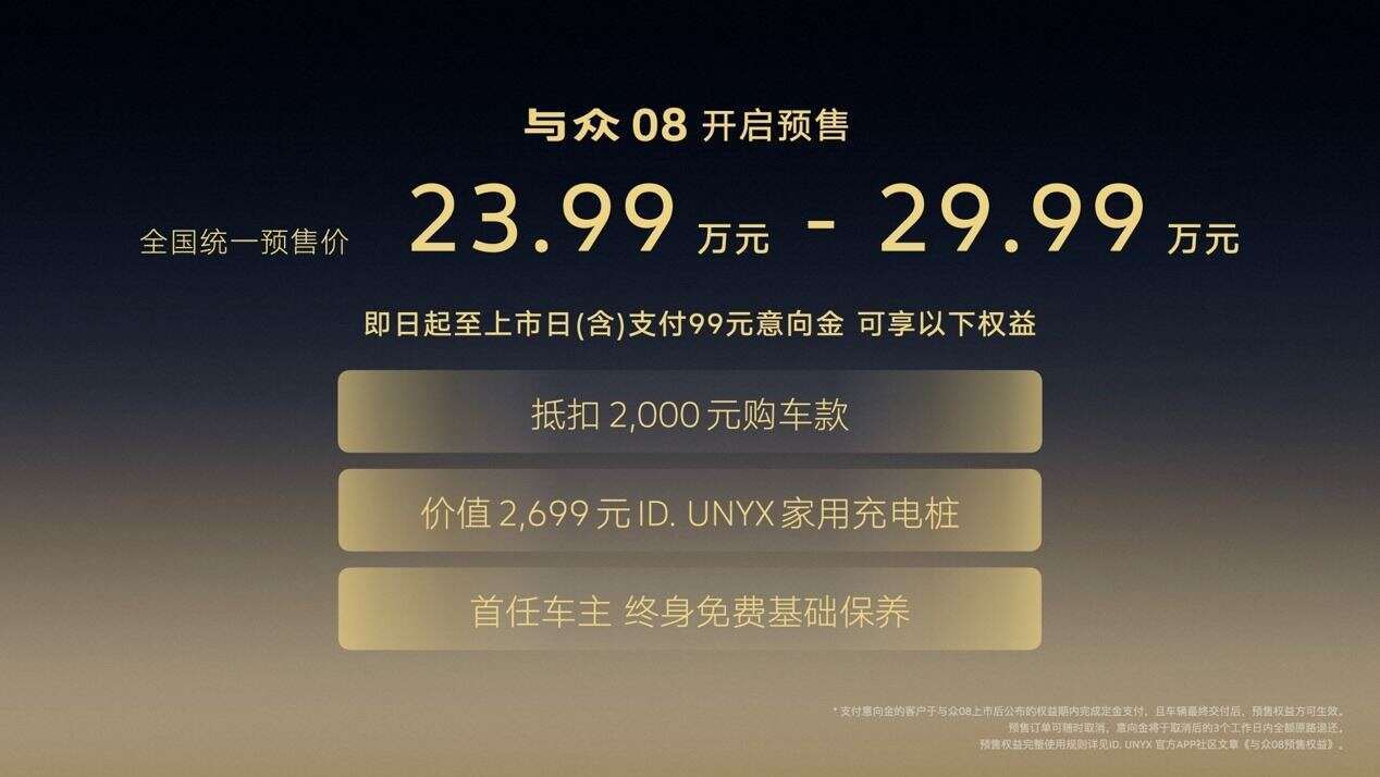 3月26日开启预售的金标各人与众08,恰是这么一款带着昭着由衷而来的居品。预售价定在23.99万-29.99万元的它,在我看来,它不单是是一款新车,更是各人真切知悉中国度庭需求后,交出的一份极具针对性的答卷。它以原创策画告别“套娃”印象,用越级空间承载生计,凭满配豪华关照细节,最终以确切职权焚烧由衷。